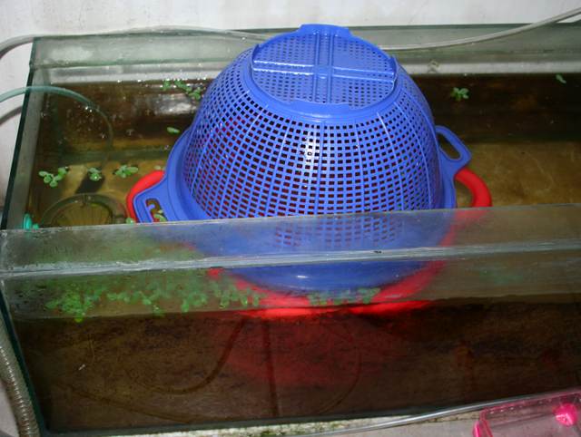 Jika indukan ikan guppy sudah terlihat gendut gemuk setelah kawin (telur dibuahi) maka segera pisahkan dan tempatkan di wadah terpisah dan indukan ditempatkan dalam wadah saringan atau tudung saji yang mengapung diatas tank sebagai isolasi bagi induknya. Agar anakan yang lahir tidak dimakan induknya. lihat gambar.